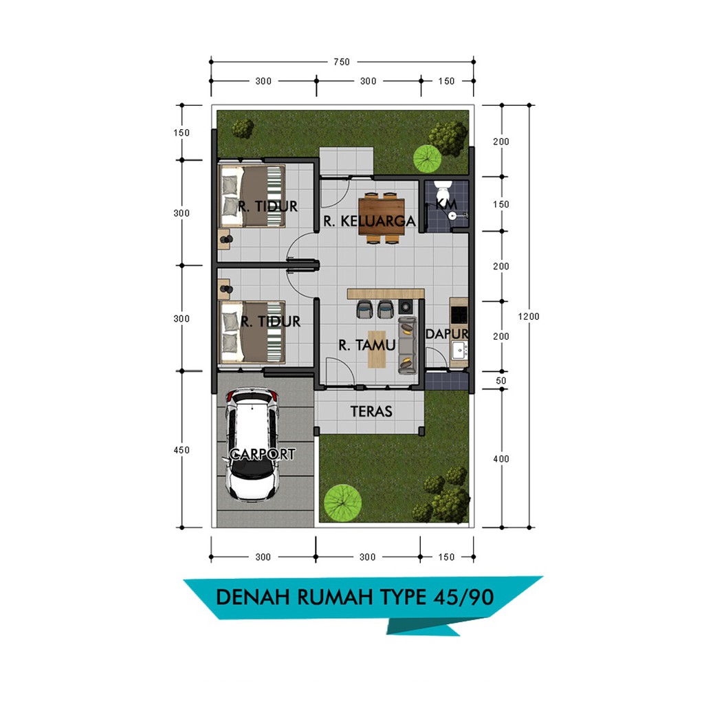 Rumah minimalis type 45 | luas tanah 7 x 15 meter.